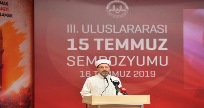 Diyanet İşleri Başkanlığı Konferans Salonu’nda gerçekleştirilen Sempozyum’un açış konuşmasını yapan Diyanet İşleri Başkanı Erbaş, 15 Temmuz’un ülkemizin maruz kaldığı büyük bir ihanet karşısında aziz milletimizin yazdığı onurlu bir destanın yıldönümü olduğunu söyledi.