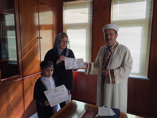 Müftü Vekilimiz, merasimin sonunda İrina Kulemina’ya günün anısına ihtida belgesi, Rusça mealli Kur’an-ı Kerim yine Rusça İslam İlmihali ve Oğlu Daniel’e dini boyama kitapları hediye etti. İhtida merasimi hatıra fotoğrafının çekilmesi ile sona erdi.