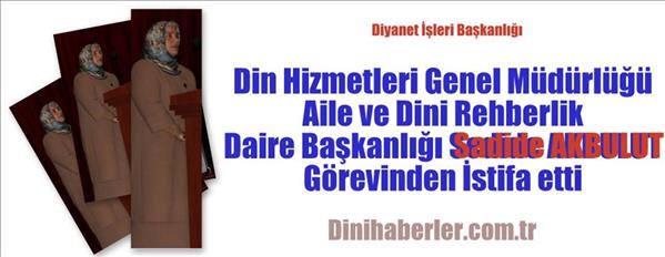 <p>Din Hizmetleri Genel Müdürlüğü Aile ve Dini Rehberlik Daire Başkanlığı'na Sedide AKBULUT Görevinden istifa etti</p> <p></p> <p><span style="color: rgb(0, 0, 0); font-size: 14px; font-fami