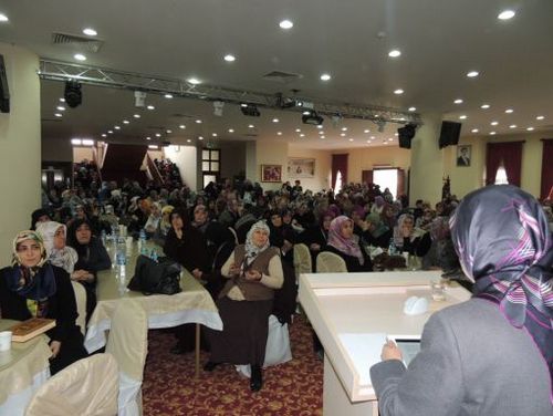 Ankara Müftülüğü Aile ve Dini Rehberlik Bürosu ve Sincan İlçe Müftülüğü tarafından ortaklaşa düzenlenen 8 Mart Dünya Kadınlar Günü programı salona sığmadı. Salonu tıklım tıklım dolduran bayanlar yer bulamayınca ayak