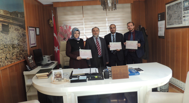 Sincan Kaymakamlığı tarafından görevlerinde başarılı olan Sincan ilçe müftülüğü personeline başarı belgesi verildi. Görevlerinde gösterdikleri azim ve üstün gayretlerinden dolayı taltif edilmeye layık görülen personele başarı belgelerini Sincan İlçe Müftüsü Osman ŞENER makamında kendilerine takdim etti.