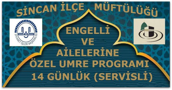 Sincan İlçe Müftülüğü Engelli ve Aileleri için Özel Ekonomik 14 Günlük Umre programı açtı. Programdan tüm engelli ve aileleri istifade edebilecek.