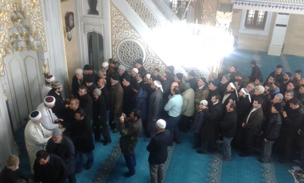 Hınca hınç dolu olan camiinin alt katını bayanlar doldururken erkek cemaat içeride yer bulamayınca dışarıda serili bulunan hasırlarda soğuya rağmen bu geceden nasibini almak üzere programı sabırla dinledi.
