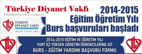 2014-2015 Türkiye Diyanet Vakfı Eğitim Öğretim Yılı Burs başvuruları başladı. Bu sene verilecek burs çeşitleri ve müracaat formları yayınlanmıştır...Türkiye Diyanet Vakfı Bursundan yararlanmak isteyen değerli öğre