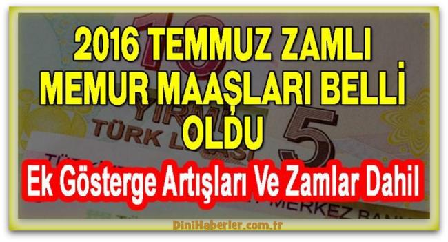 Temmuz ayı birçok kesimle birlikte memurlar için de zam ayı oluyor. Yapılan toplu sözleşme gereğince memurlar ve memur emeklileri Ocakile birlikte Temmuz'da da zam alıyor. Buna göre Ocak ayında yüzde 6 zam veyüzde 0.90 enflasyon farkı alan memurlar ve memur emeklileriTemmuz'da da yüzde 5 artış alacak. Maaşlarına yansıyacak bu artış dışında enflasyon farkı ihtimali de var. Buna göre 4 Temmuz'da açıklanacak enflasyon rakamlarıyla birlikte son 6 aylık enflasyon yüzde 6 ve yukarısında çıkarsa memurlara ve memur emeklilerine aradaki fark da ödenecek. Memur-Sen'in verilerine göre; en düşük memur maaşı (bekar) Aralık 2015 itibariyle bin 906 lira idi. Ocak ayında yüzde 6 + yüzde 0.90 artışın yansıtılmasıyla en düşük memur maaşı 2 bin 38 lira 54 kuruşa çıktı. Temmuz'daki yüzde 5'lik toplu sözleşme zammıyla da bu maaş yaklaşık 102 liraartışla 2 bin 140 lira 46 kuruşa ulaşacak.