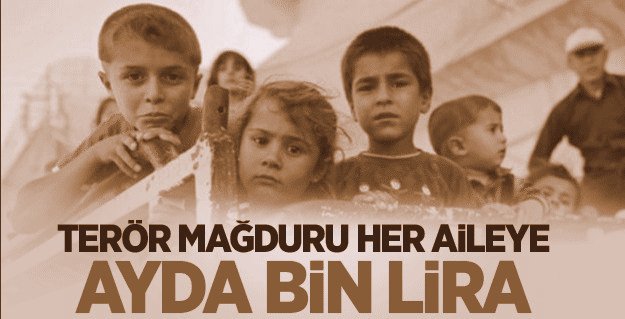 Terör olayları nedeniyle mağdur olan vatandaşlarının kayıplarının giderilmesi için her aileye, 1 yıl boyunca ayda 1000 lira ödeme yapılacak.