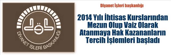 2014 Yılı İhtisas Kurslarından Mezun Olup Vaiz Olarak Atanmaya Hak Kazananlar İle İlgili Duyuru2014 YILINDA İHTİSAS KURSLARINDAN MEZUN OLUP VAİZ OLARAK ATANMAYA HAK KAZANANLAR İLE İLGİLİ DUYURU16.