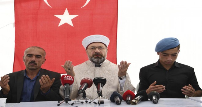 Birlik ve beraberlik içinde olunduğu sürece milletin her zaman dipdiri kalacağını bildiren Başkan Erbaş, "Şehit kanlarıyla yoğrulmuş bir vatana sahibiz. İnşallah milletimiz birlikte bu terör belasının üstesinden gelecektir” ifadelerini kullandı.
