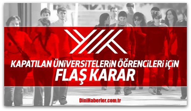 YÖK, dün yayınladığı karar sonrasında, kapatılan üniversitelerde öğrenim görmekte olan öğrenciler için yeni bir karar aldı.