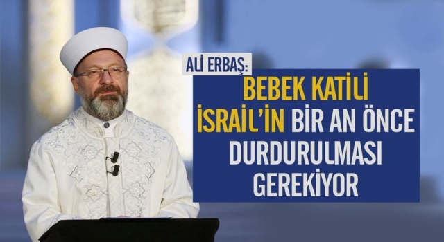 Başkan Erbaş, İsrail’in katliamlarının durdurulması için dünya kamuoyuna seslenerek, “Bebek katili ve mabetleri hiç acımadan yıkan, tahrip eden İsrail terörünün, zulmünün bir an önce durdurulması gerekiyor. Dünyanın gözü önünde böyle bir terör faaliyetini nasıl yapabiliyor, nasıl bu kadar cesaret içerisinde hareket ediyor. Bunu sorgulamamız gerekiyor. İnsanlık olarak bunu sorgulamamız gerekiyor.” diye konuştu.