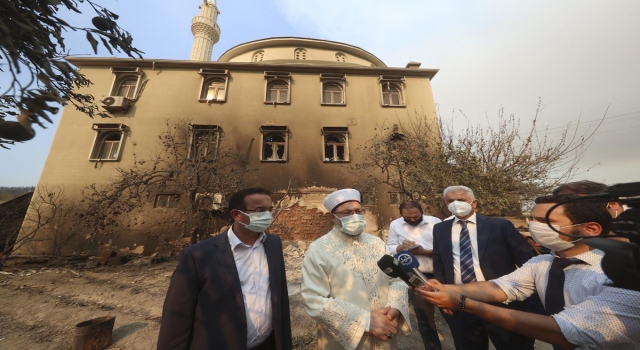 Diyanet İşleri Başkanı Prof. Dr. Ali Erbaş, orman yangınından etkilenen Manavgat'ın Kalemler Mahallesi’ni ziyaret etti, yangında zarar gören Kalemler Camii’nde incelemelerde bulundu