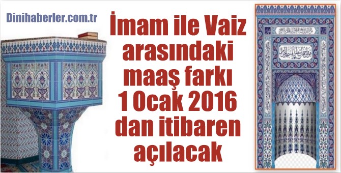 Diyanet İşleri Başkanlığı emrinde Vaiz ve İmam olarak görev yapan Devlet memurlarının aylık net maaşları arasındaki fark 1 Ocak 2016 tarihinden itibaren artacak.