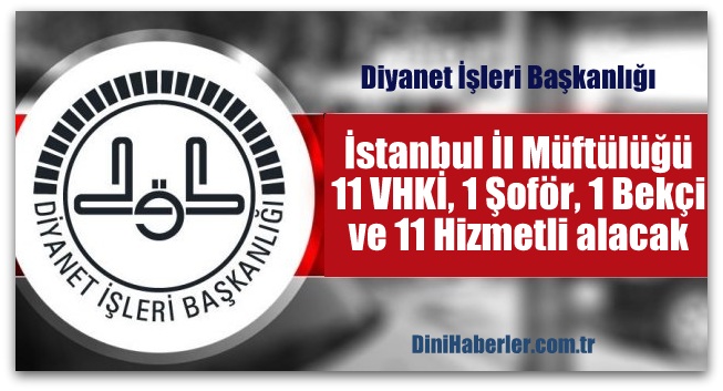 DİYANET HABER-İstanbul İl Müftülüğü 11 VHKİ, 1 Şoför, 1 Bekçi ve 11 Hizmetli Kadroları personel alacak.