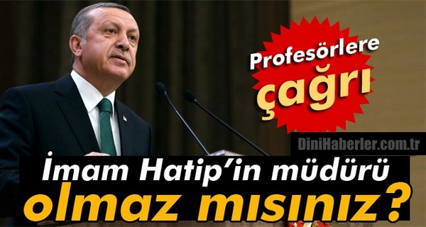 Cumhurbaşkanı Recep Tayyip Erdoğan, profesör ve doçentlere çağrıda bulunarak, “Bazı profesörlerimiz İmam Hatip’in müdürü olmazlar mı? Hadi 'Ben İmam Hatip okulunda yöneticilik yapmaya varım' desin. İşte reform budur” dedi.
